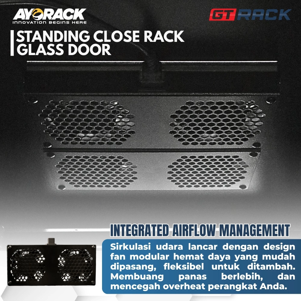 - IMPROVED SIDE DOOR AIRFLOW: tambahan design khusus dari GT RACK pada side door untuk sirkulasi maksimal.