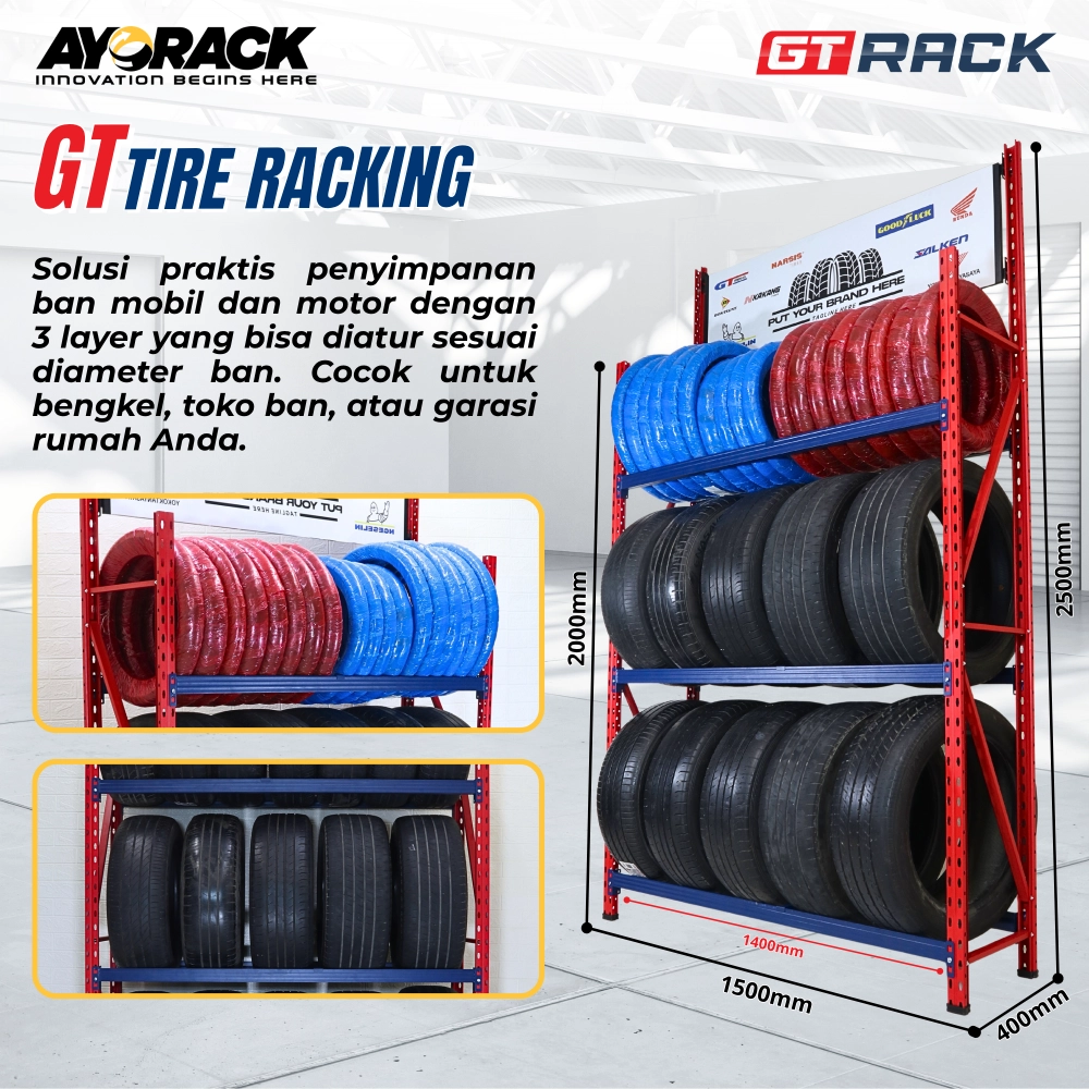Melalui pertimbangan khusus, GT Tire Racking menyediakan slot khusus untuk identitas merek Anda — tampil profesional dan mudah dikenali.